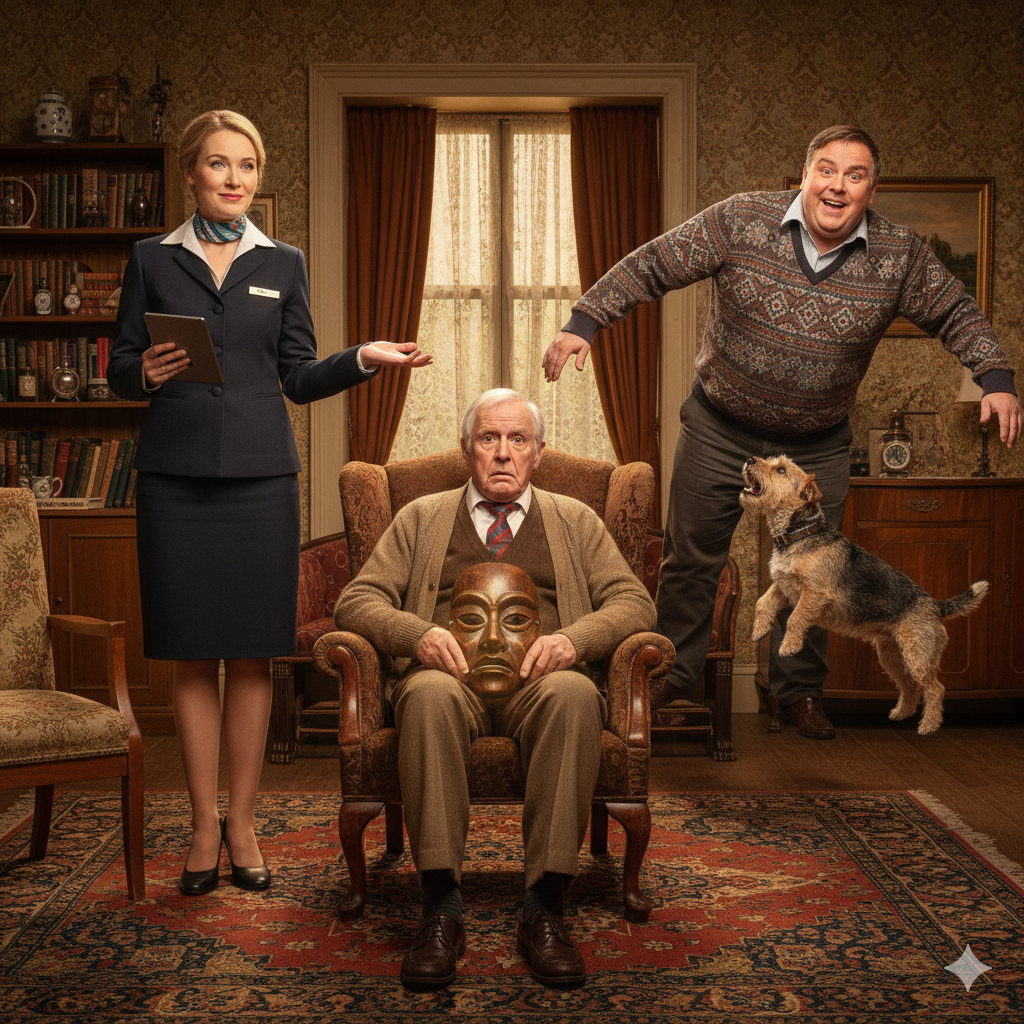 Shut Up, Monty! David, a recently retired senior civil servant, is finding retirement to be a crushing bore. His days are a tedious cycle of complaining about his barking dog and dodging his excruciatingly dull friend, Philip. But his mundane world is shattered when a gift arrives: a mysterious Caribbean wooden mask that holds an incredible secret. After a polish, the mask summons Jean, a wish-fulfiller who operates less like a genie and more like a slick corporate agent with a strict set of terms and conditions. David is granted three wishes, but his cynical and careless choices lead to catastrophic and hilarious results. A casual remark wishing Philip wasn't so boring leads to his friend's untimely demise in a hit-and-run... involving David's own car! With the police closing in and his life spiralling into a supernatural farce, David must use his final wish to try and escape the mess he's created. It’s a riotous descent into magical mix-ups and mortal mayhem where one man’s grumpiness escalates into an unbelievable crisis. |